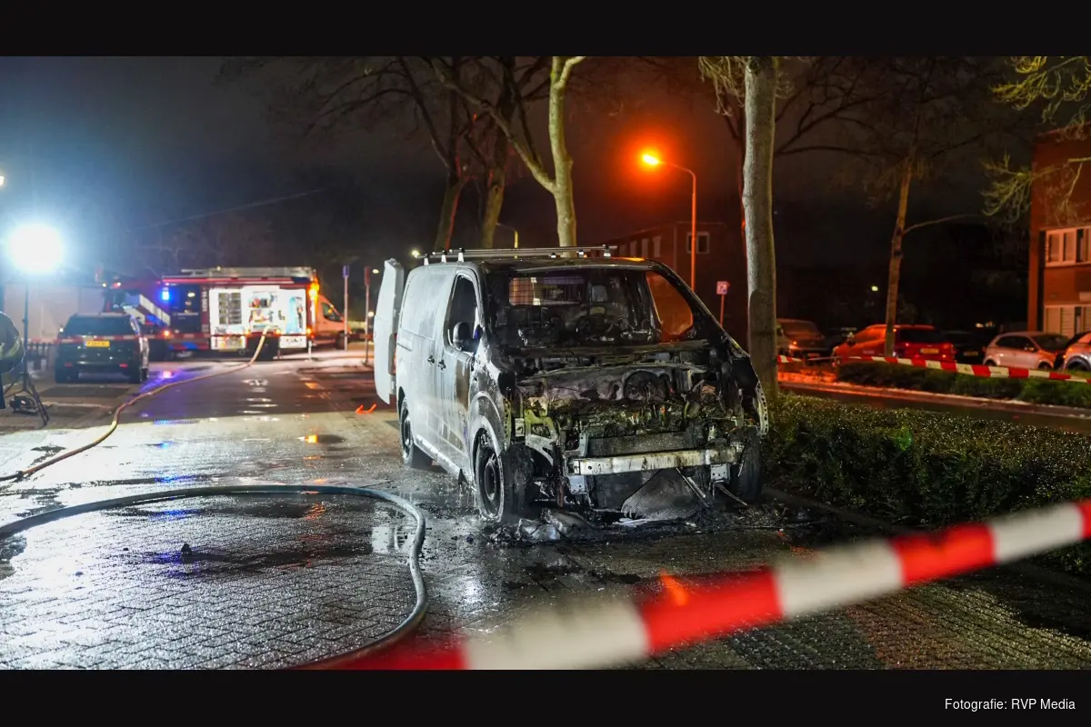Bij aankomst van de brandweer bleek er een bestelbus volledig in brand te staan aan de voorzijde.