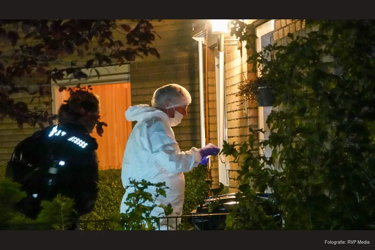De politie heeft de woning afgezet met lint en is nog drukdoende met het onderzoek, zowel in en rond de woning als in de buurt.