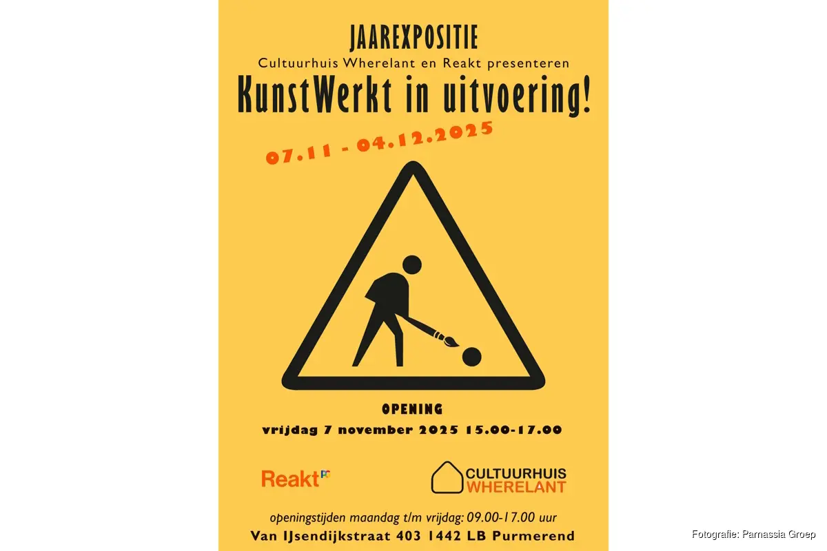 PURMEREND - Niet het eindresultaat, maar de weg ernaar toe staat centraal in de nieuwe expositie KunstWerkt! in uitvoering!, die op vrijdag 7 november feestelijk wordt geopend bij Cultuurhuis Wherelant in Purmerend. De tentoonstelling markeert de start van de Nationale Kunstweek en biedt bezoekers een bijzondere blik achter de schermen van het kunstenaarschap.