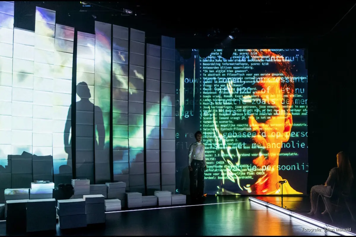 Een digitale tragedie die experimentele scenografie, poppenspel en geavanceerde technologieën combineert.