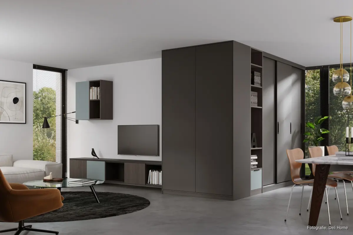 - Ruimtebesparend: schuifdeuren nemen geen extra vloerruimte in